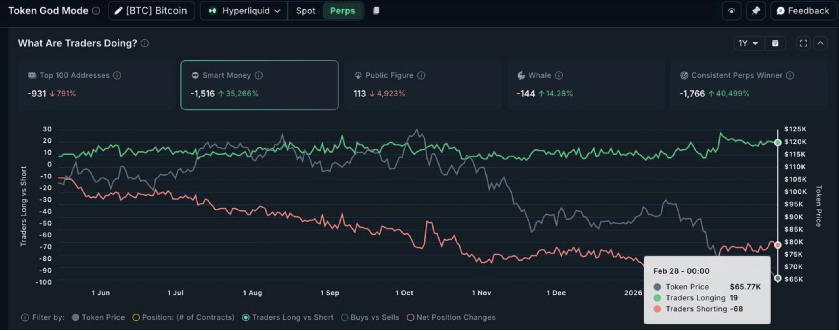 これらのスマートトレーダーを確認すると、直近の市場変動に適切に対応してきたプレイヤーであるにもかかわらず、現在は総じてロングポジションを中心に据えていることが分かる。